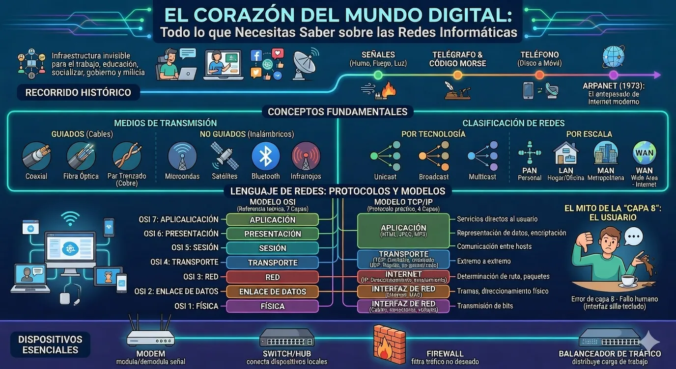 En esta guía detallada, exploraremos los fundamentos de las redes, su evolución histórica y los modelos que permiten que la información viaje por todo el mundo en milisegundos.
